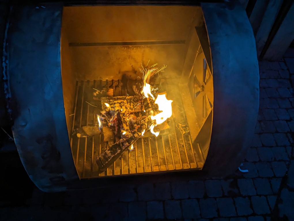 Im Nachhinein etwas offensiv platziert. Besser komplett nach links, weg vom Feuer. Dann wäre das Thermometer auch in einer interessanteren Position.